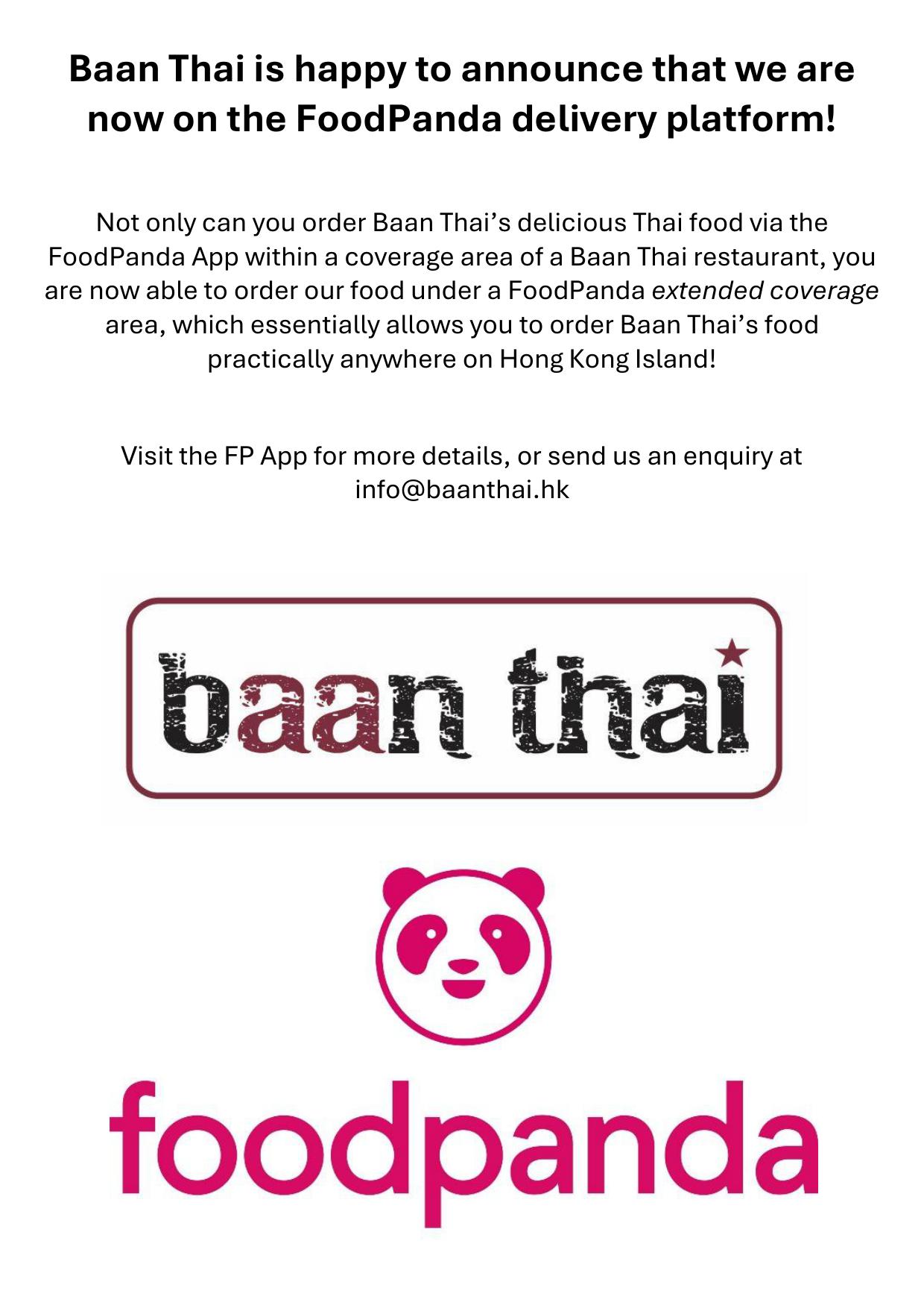 Baan Thai is happy to announce that we are now on the FoodPanda delivery platform!